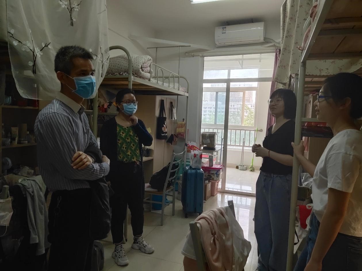 党委书记杨小渭、副书记许明及两位辅导员共同走访了学生宿舍,看望慰问第一批陆续返校的研究生。