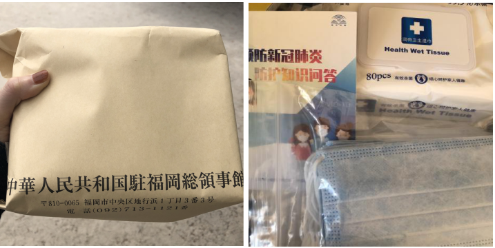 此时仍在海外的18级李子嫣同学和武天琪同学分享了她们作为留学生的体验心得。李子嫣同学所在的日本福冈当前疫情比较严重。在居家隔离期间,李子嫣同学收到了来自祖国沉甸甸的健康包,她说没有哪位来自其他国家的留学生能收到这么丰厚及时的健康防疫包,她深切感受到了祖国的关爱。武天琪同学所在的英国形势更为严重一些,但她也在领事馆的号召下做好居家隔离,并且未耽误自己的科研生活。