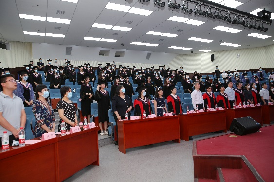 2020届全体毕业生参加了本次毕业典礼。典礼在雄壮的国歌声中拉开帷幕。