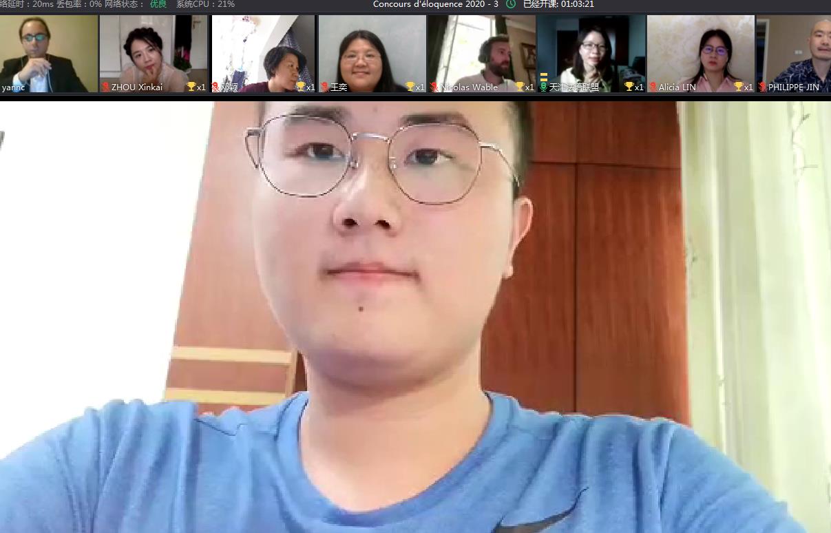 由天津法语联盟、武汉法语联盟、西安法语联盟联合举办的“2020第一届逐梦法声”演讲比赛于5月11日启动,截止6月6日有60多名学生参赛。经过初赛评选,最终有19名选手入围决赛,他们来自全国14所高校: 北京大学、外交pg电子官网