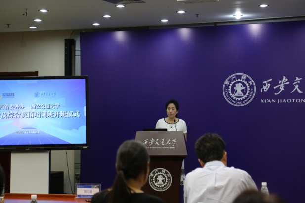 7月30日上午,陕西省委外办与西安交通大学高端翻译及综合英语外事干部培训班开班仪式在我校举行,陕西省委外办主任姚红娟,副主任姚金川,我校副校长席光,出席开幕式现场,全省1500多名外事干部通过网络直播方式参加开班仪式。开班仪式后,课程正式开始,由pg电子(中国)官方网站