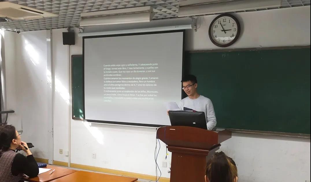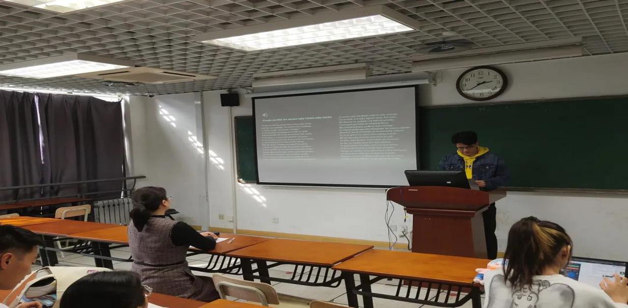 10月21日下午,隶属俄德语系的西班牙语协会首次在金秋外语节举办西班牙语朗诵与书写大赛。尽管是第一次开办,却并没有影响老师同学们的满腔热忱。三尺讲台,一众学子满怀热望,他们有的娓娓道来,在平静处起涟漪;有的慷慨激昂,于平地里起高楼。这样的场景让人难忘。