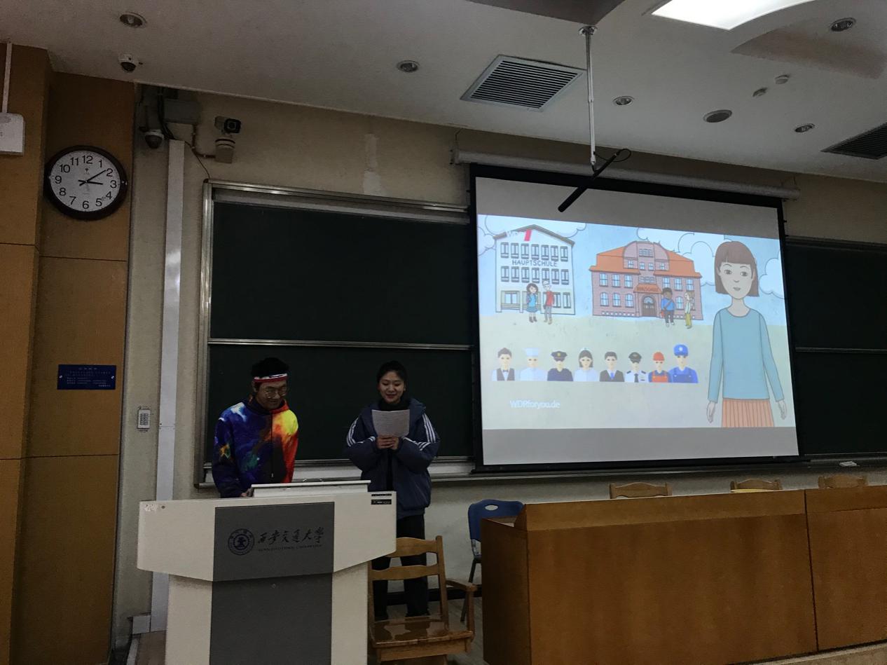 英德方向的袁鸣和钟星月同学展示风格轻松风趣,表达熟练流畅,以对话的形式将德国复杂的教育体系介绍地简单易懂。