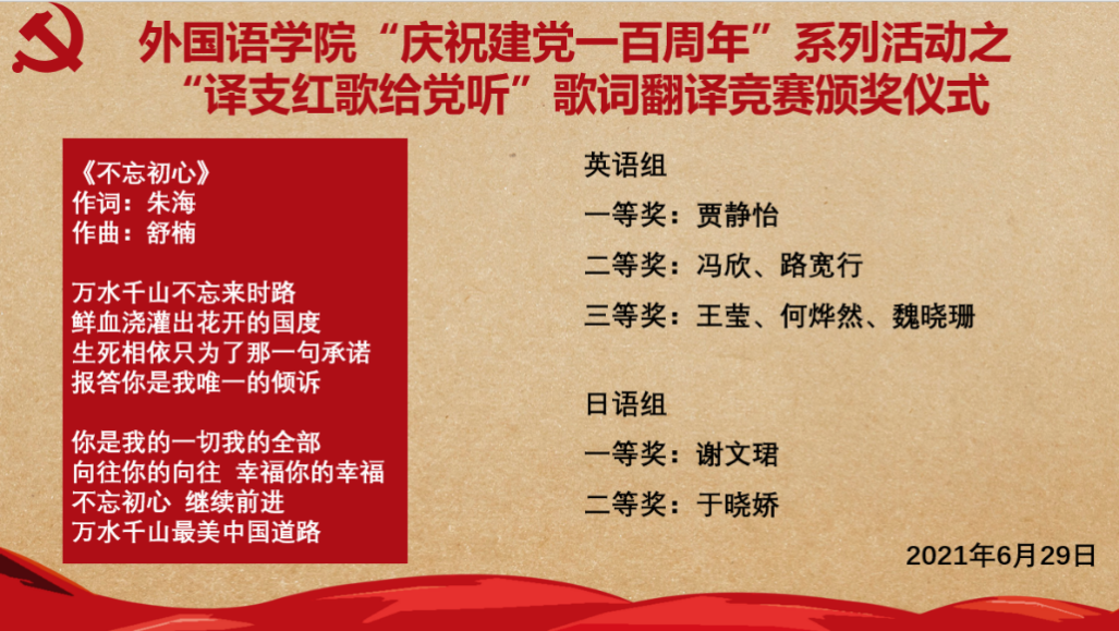 “译支红歌给党听”歌词翻译竞赛是pg电子(中国)官方网站