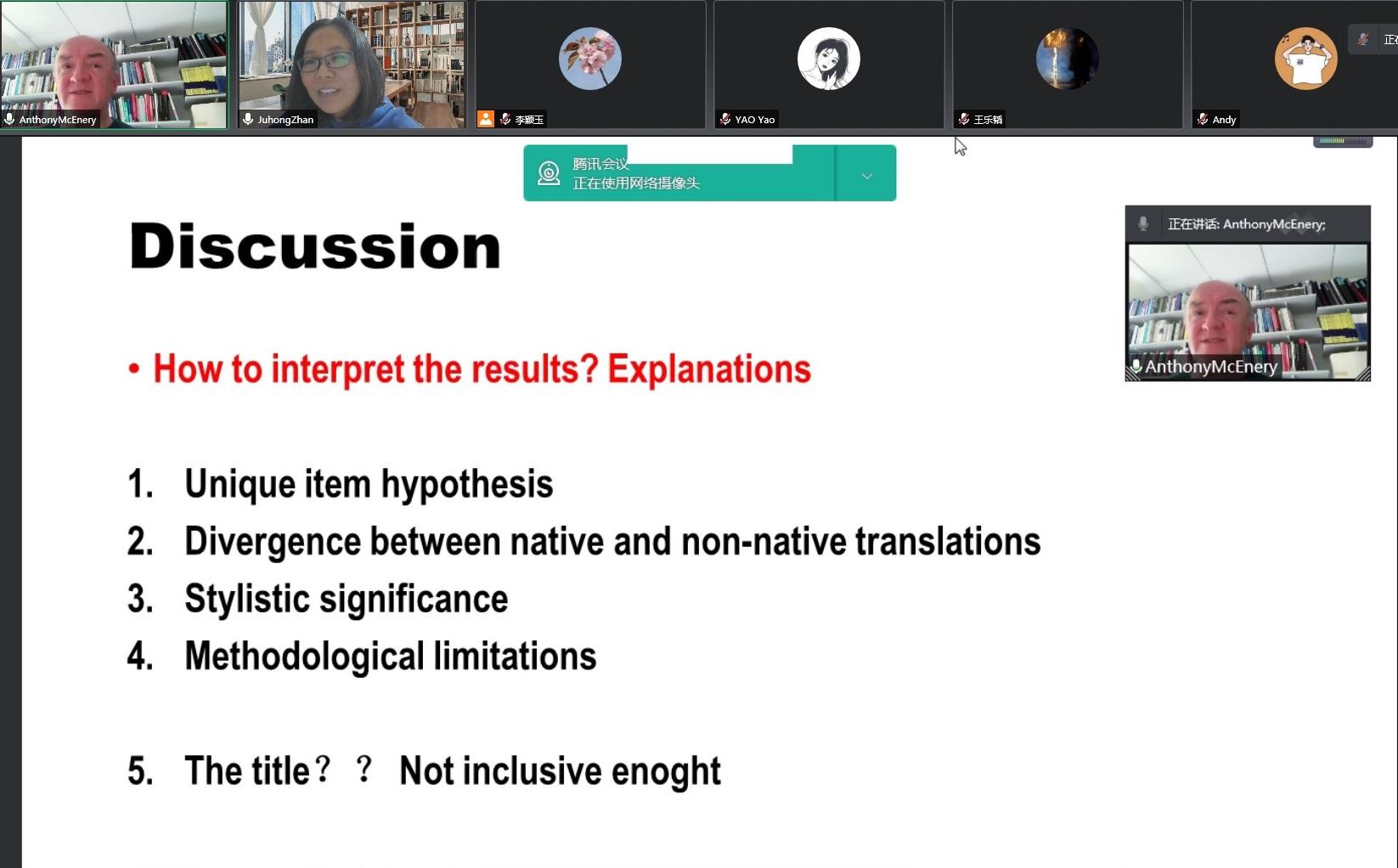 邀请我校高端外国专家Tony McEnery院士举行在线学术交流活动,就推进双方近期合作事宜进行磋商,并对pg电子官网