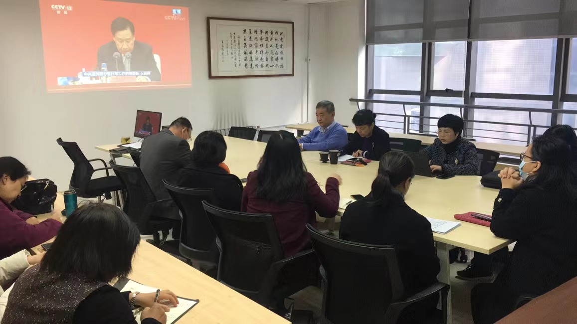 党政领导班子成员、党支部书记、师生代表收看十九届六中全会精神新闻发布会,会后与会人员围绕十九届六中全会精神围绕立德树人开展交流讨论。