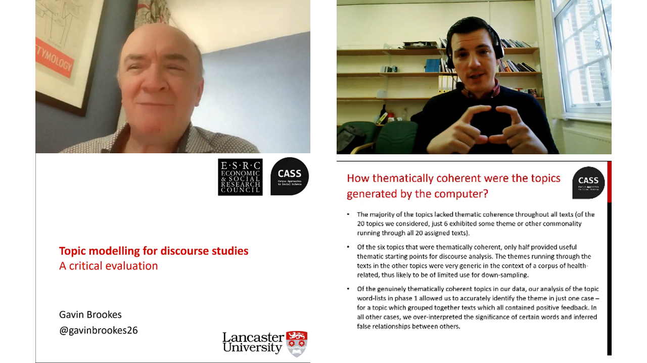 2022年3月4日晚8点,外国语言文化论坛第207讲暨Masterclass系列第5讲以腾讯会议形式线上举办。本次论坛主题为“Topic Modelling for Discourse Studies: A Critical Evaluation”,特邀我校高端专家、英国兰卡斯特大学杰出教授Tony McEnery教授和高级研究员Gavin Brookes博士为主讲嘉宾,我校部分师生参加了此次活动。