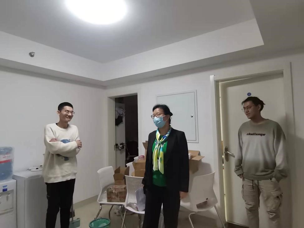 党委副书记许明和兼职辅导员张新怡一同走访创新港学生宿舍。