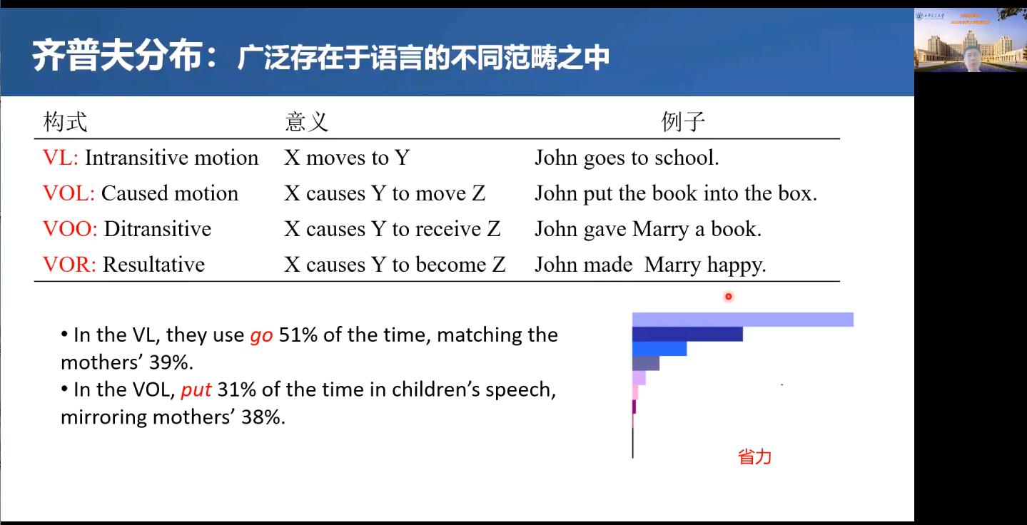 博士生导师、省级人才张晓鹏教授首先为全体营员做了题为“语言学习中的概率效应”的专业素养讲座。结合最新研究成果,向营员们介绍了语言结构的分布概率及对语言学习的启示。讲座中,营员积极互动,表现出了对语言研究的浓厚兴趣。
