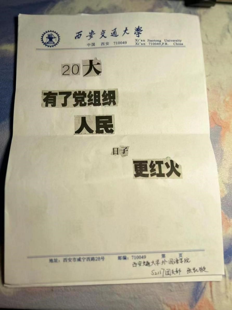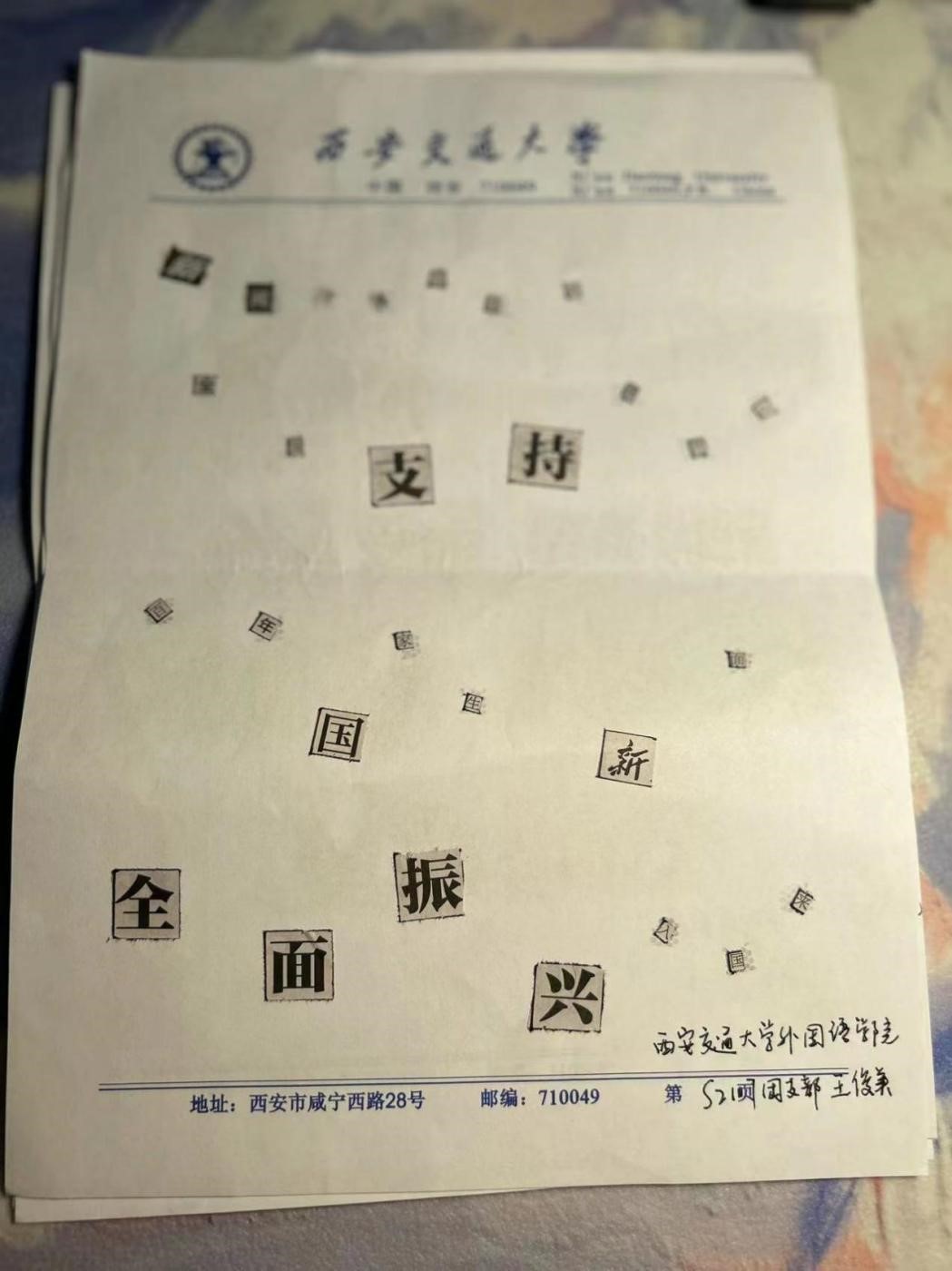 硕2117团支部于10月16日举办了“拼贴诗歌”活动,同学们积极踊跃参与,用一首首诗词表达心声,传达对党和国家的爱意。