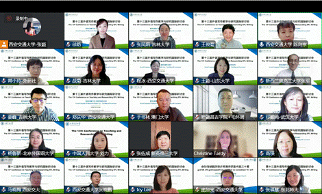 重庆大学团队做了题为“基于PBLL的大学英语写作教学模式构建”的展示,介绍了PBL实践教学的理据、分类、项目实施和评价标准,项目驱动的模型及教学设计案例,以及PBL教学的方法和发现,分享了跨学科的学术素养培养的重要性及合作教学的方法和感悟;吉林大学团队做了题为“Four cases of teaching English writing online: Pedagogical principles, course design and teaching practices”的展示,分享了在线教学的理论与实践,回顾了学术英语写作文献并展示了学生的文本,指出了线上写作存在的问题,并介绍了阶段性写作任务,提出了基于题材的教学方法。本场团队展示由西安交通大学张晓鹏教授主持。