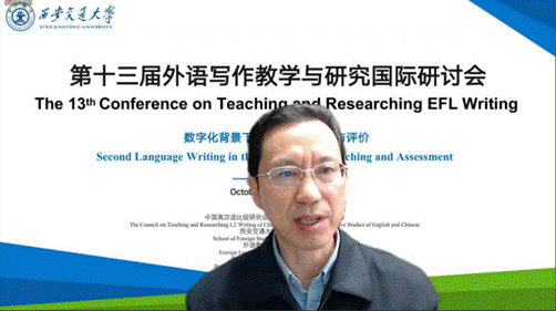 郑庆华常务副校长首先代表西安交通大学诚挚欢迎国内外参会专家学者。他指出,人类文明的起源始于语言,语言教学是大学通识教育不可或缺的重要基础环节。在第四次工业革命背景下,教育数字化是推动教育治理体系和教育现代化的根本手段,是解决优质资源共享、提升教育公平和效率的根本途径。外语教师要充分研究运用人工智能、大数据、云计算等新一代信息技术手段,促进语言教学的有效性,提升自身信息素养,帮助学生融入沉浸式、体验式的教学当中。他期待通过此次会议,进一步提升广大教师的外语写作教学和研究能力,进一步推动跨校和跨国合作。