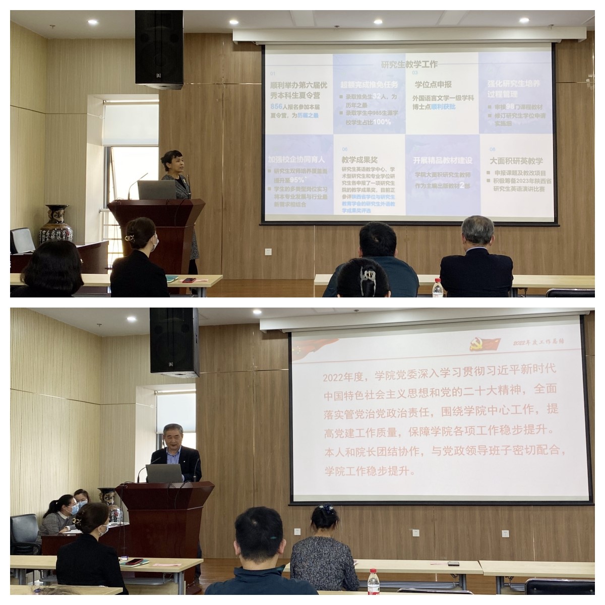 党委副书记许明、副院长王华、副院长李莹、副院长程冰分别就分管工作做了总结汇报。